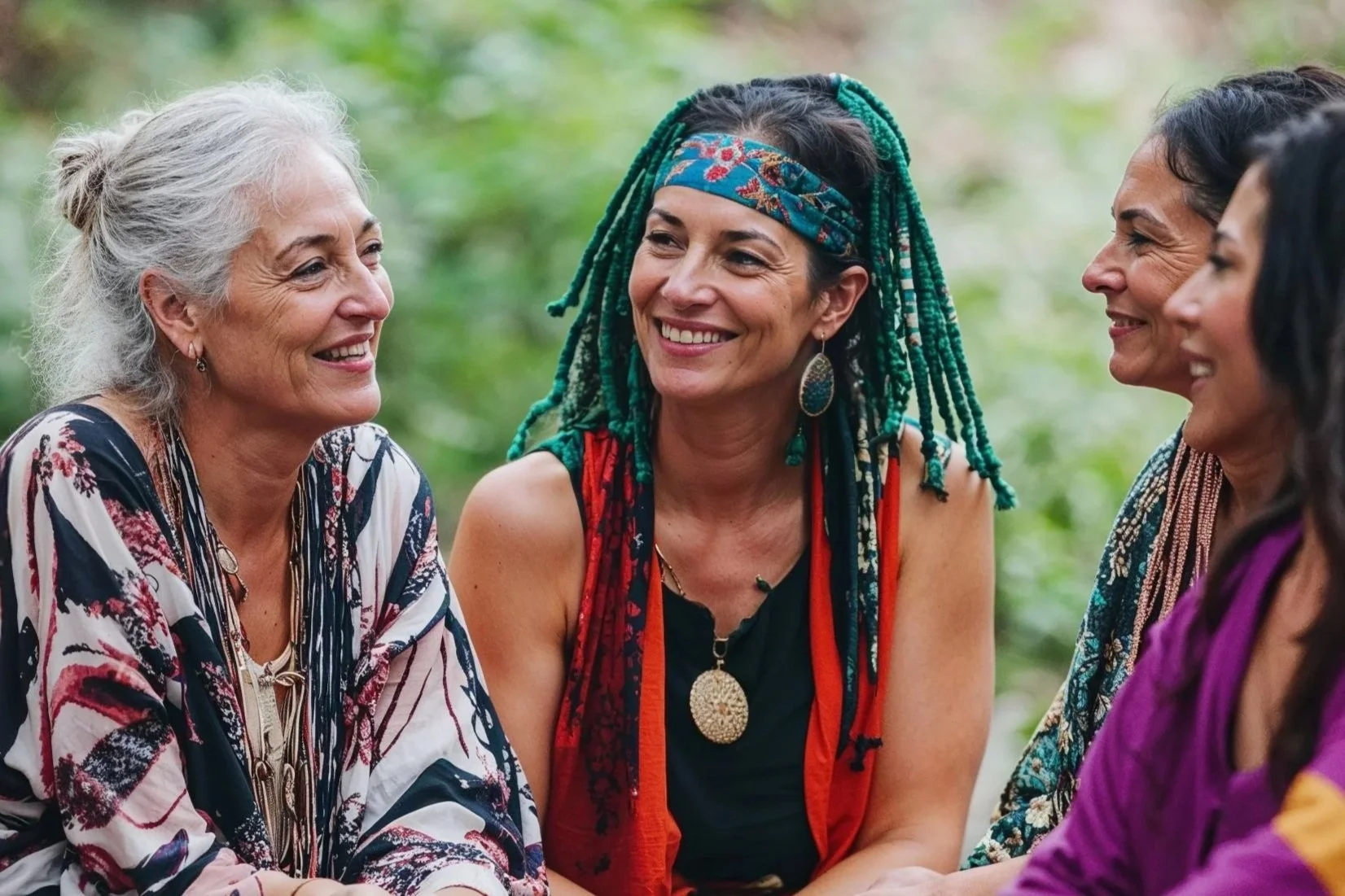• Sacred sisterhood circles where women reclaim voice, intuition, and leadership together